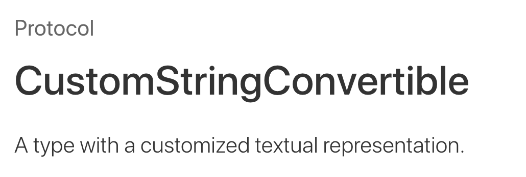 CustomStringConvertible은 텍스트적인 표현을 커스터마이즈하는 타입이라고 적혀있다.