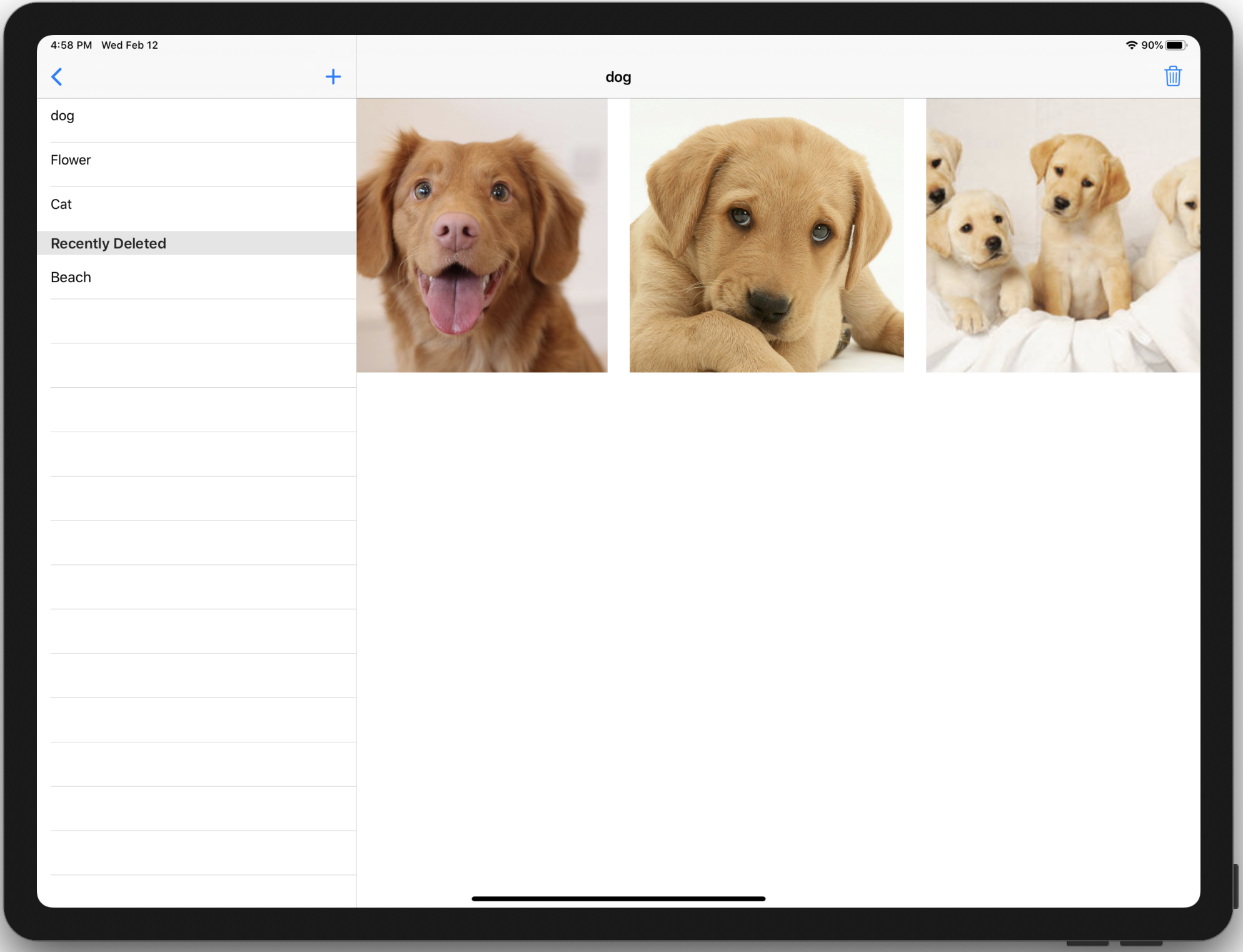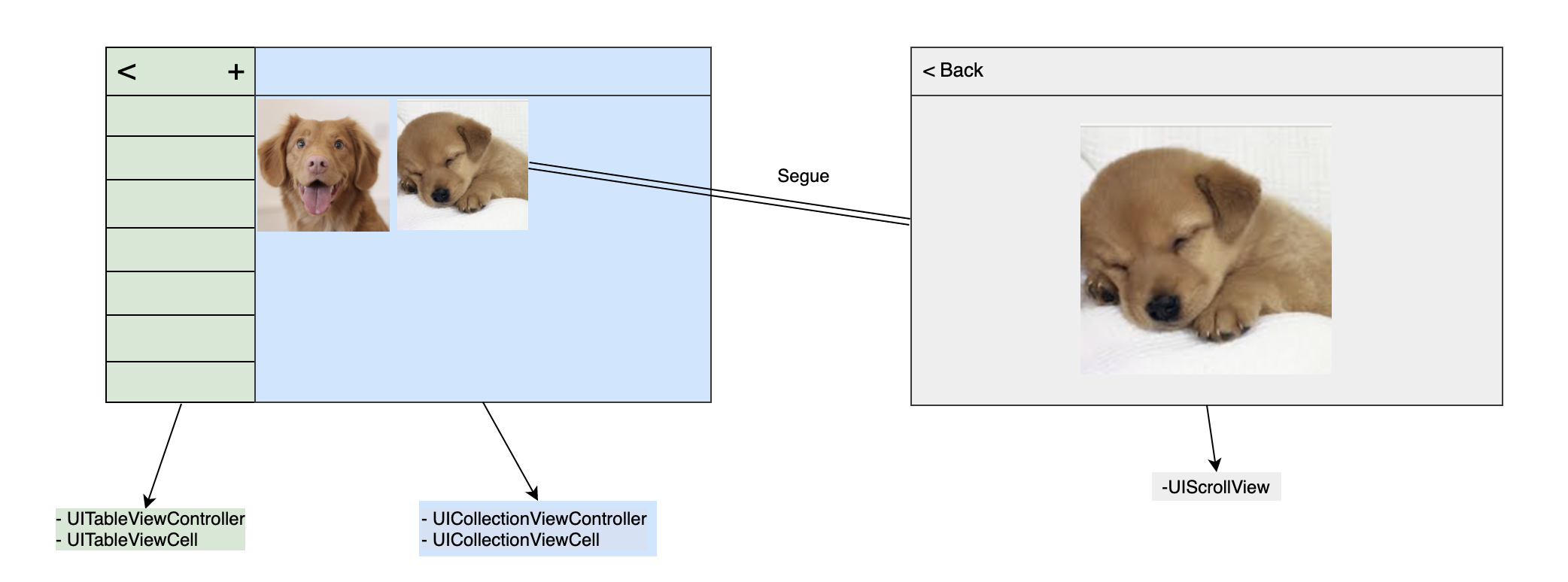 SplitViewController를 이용하여 Detail View에는 각 갤러리 내의 이미지를 보여주는 Collection View가 들어가고, Master View에는 갤러리 목록이 들어갑니다.