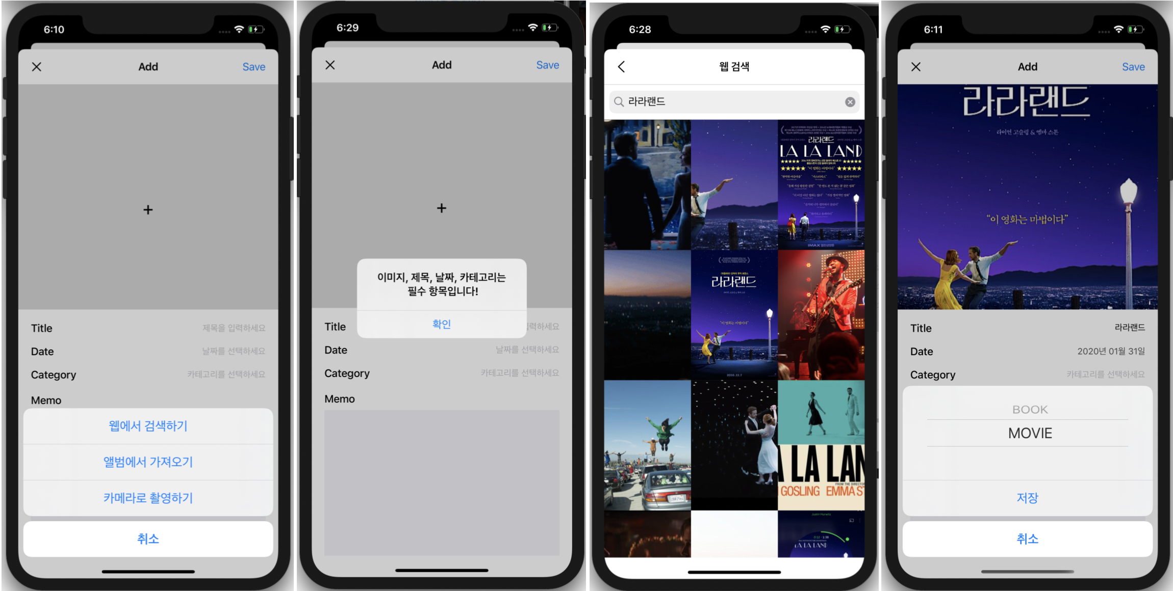 - 영화, 책, 전시회 등의 카테고리를 설정하고, 리뷰를 기록 및 관리하기 위한 앱