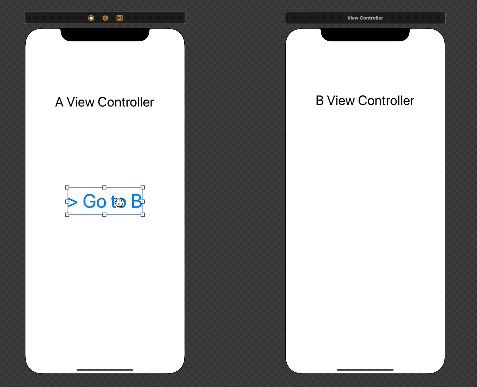 A ViewController에서 "Go to B" 버튼을 누르면, B ViewController로 화면을 전환하고자 한다.
